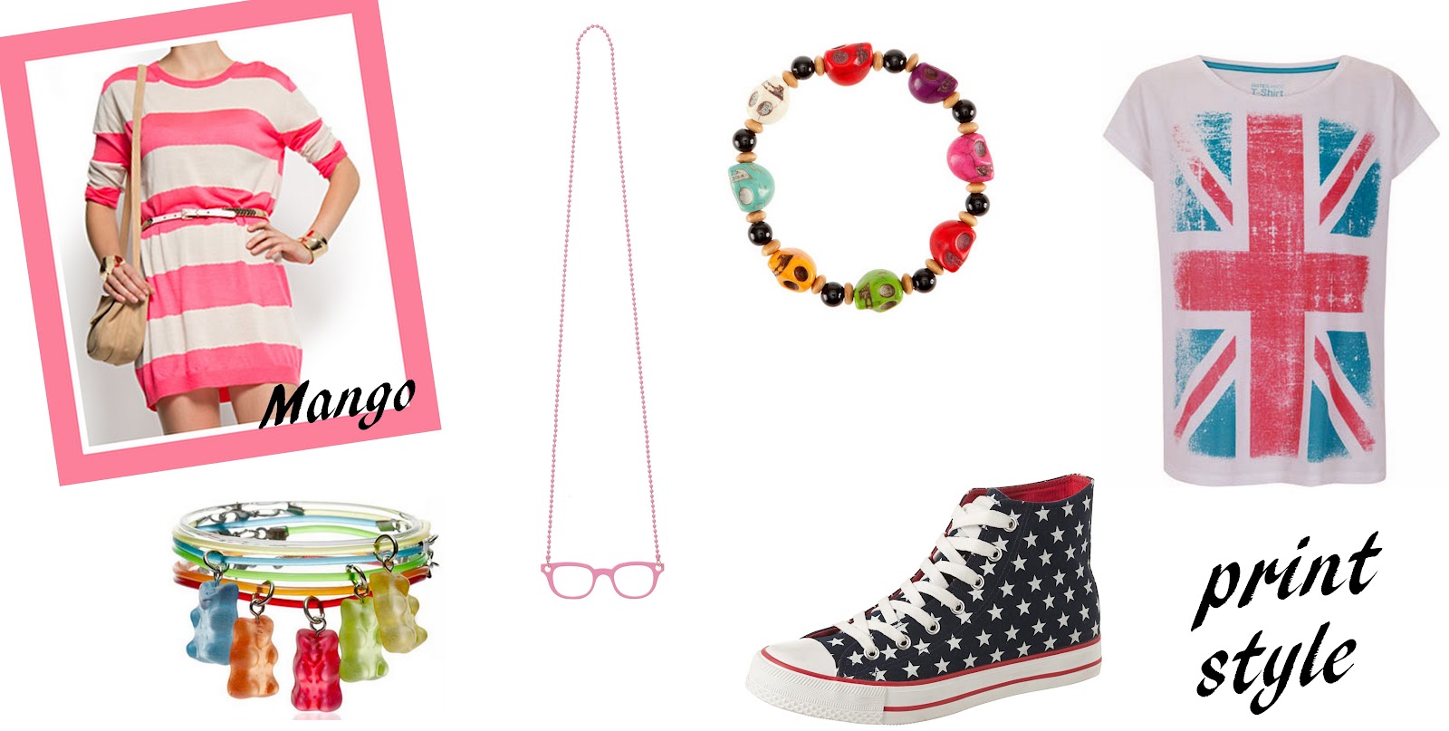 El vestido corto de Mango, la camiseta con la bandera británica de Blanco y las zapatillas rollo americano de Primark me chiflan.